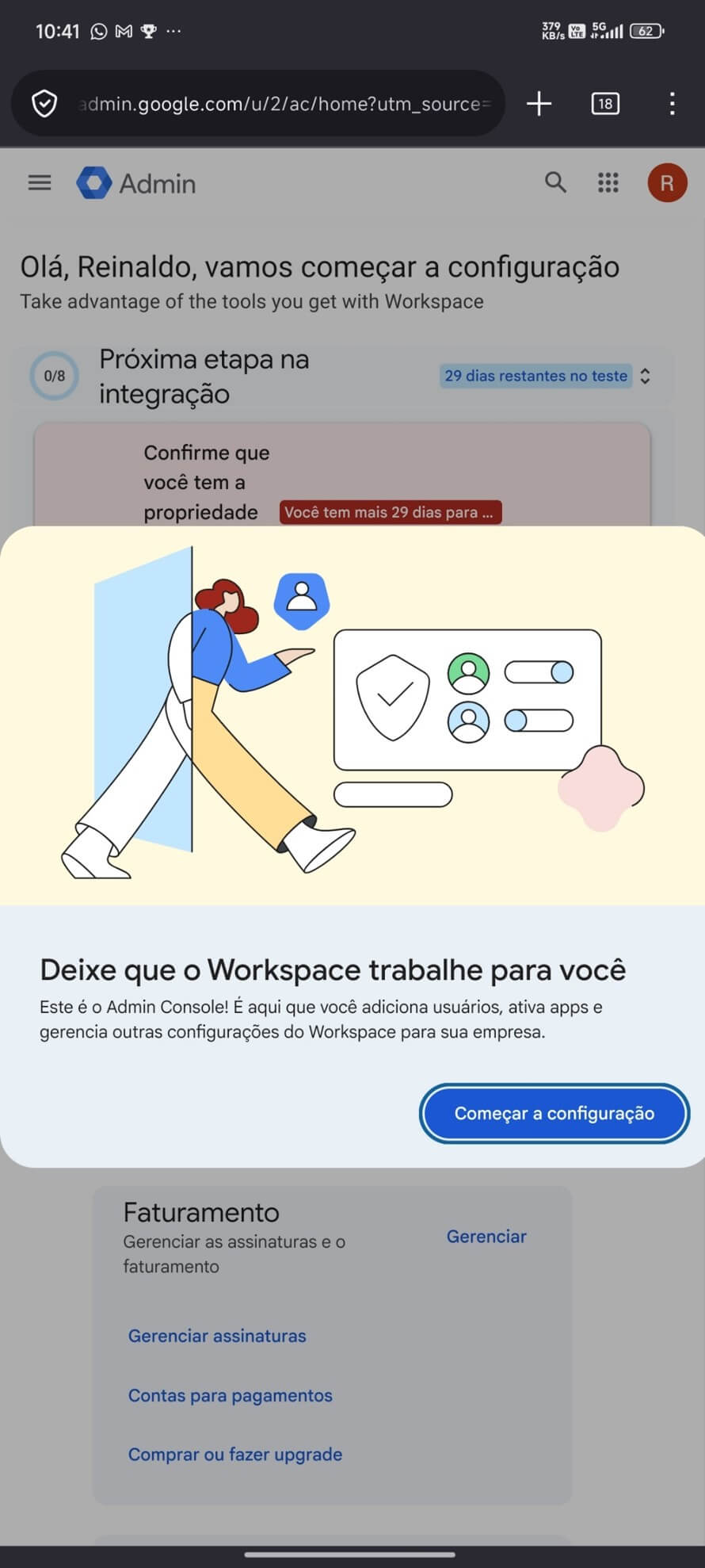Agora você foi redirecionado para a sua conta, clique em Começar a configuração.