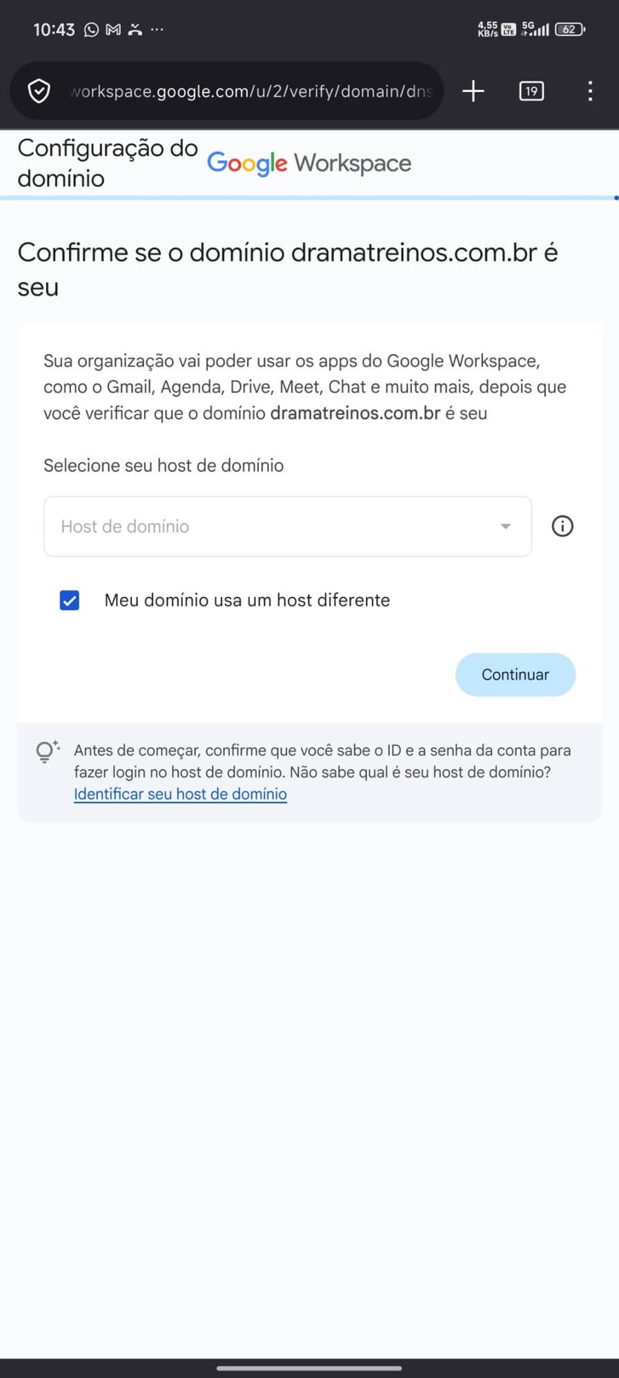 Nessa tela escolha a opção Meu domínio usa um host diferente.