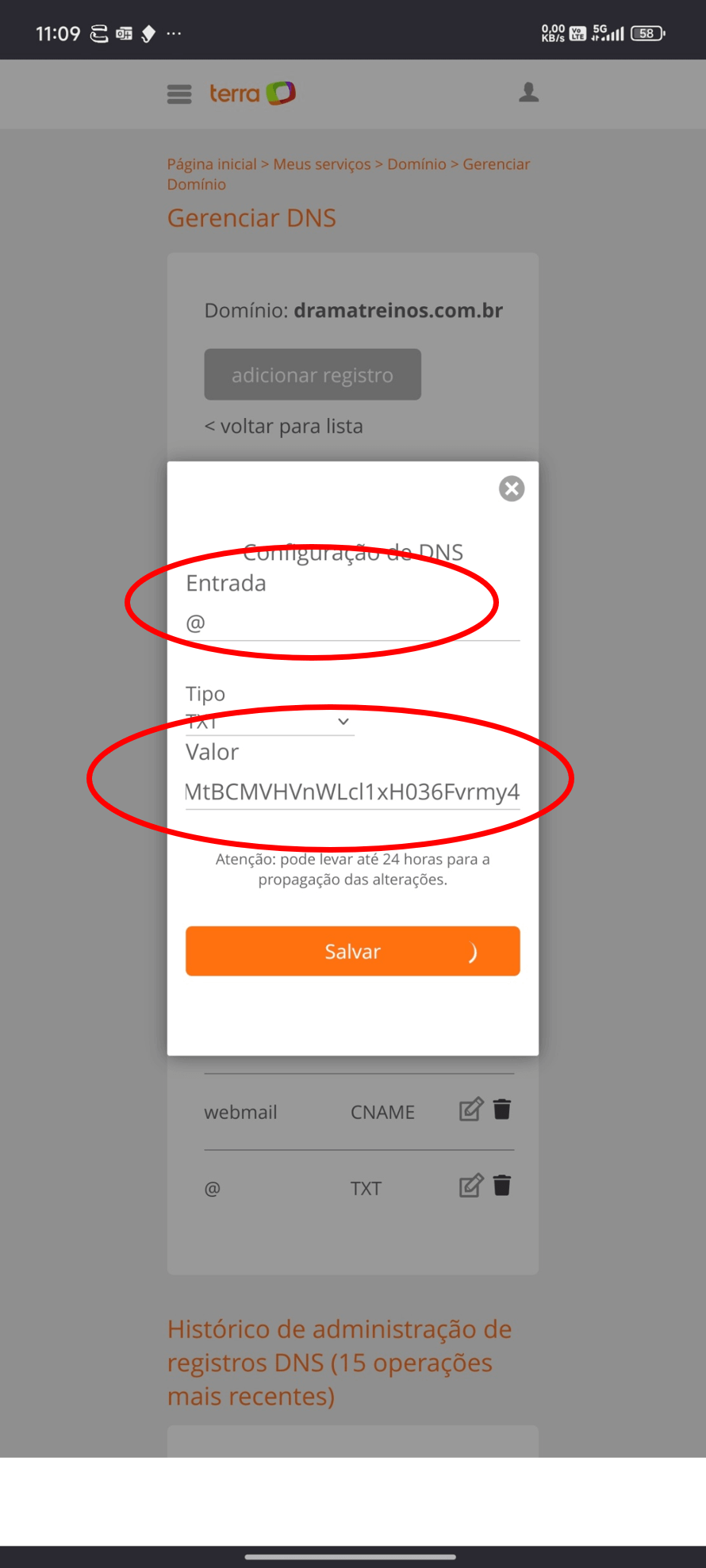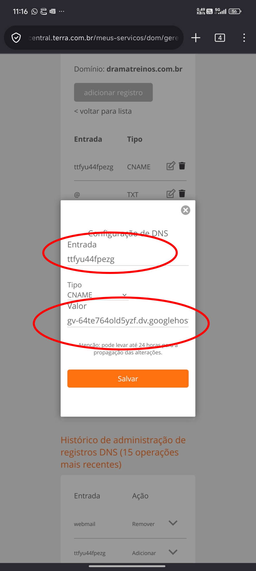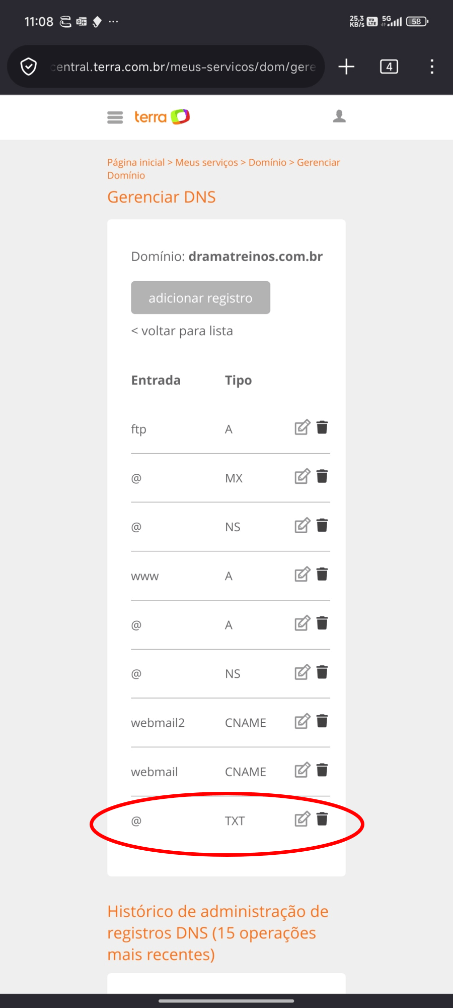 Na entrada CNAME clicar no ícone