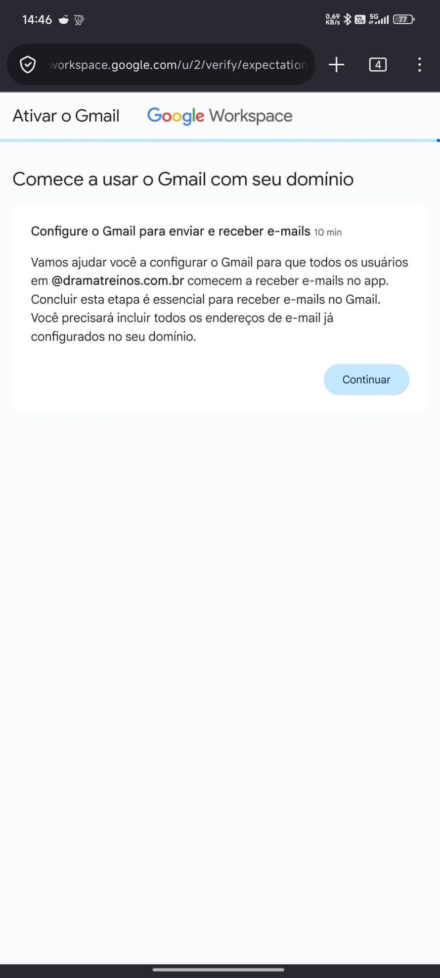 Após as alterações das portas, retornar para as configurações do Google Workspace e clique em Confirmar.