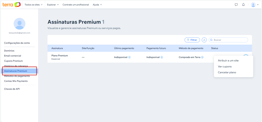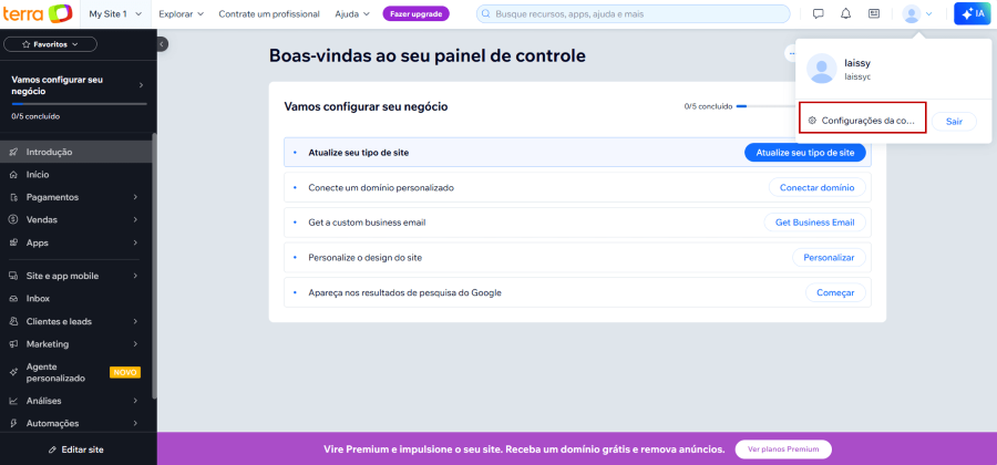 - 3) No painel de controle da Wix, clique em “Configurações de conta”