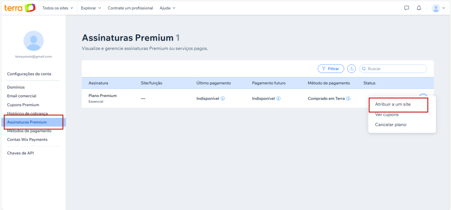 1) Realize o upgrade da Loja Virtual Gratuita para a Loja Virtual Premium diretamente na plataforma da Wix, clicando em um dos botões destacados em vermelho.