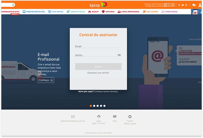 Você também pode acessar pelo app para Android e IOS. No app é preciso clicar no botão Terra dentro da tela de login do aplicativo e então inserir os dados de acesso.